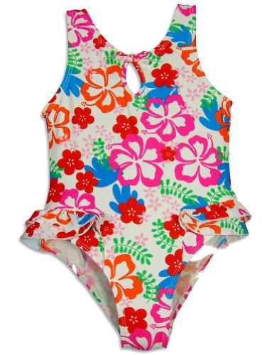Osh Kosh B'gosh - Girls 1 Piece Flower Swimsuit, White, Multi, Tank Style, Keyhole With Bow, 2 Tier Ruffles Above Leg Holes, Front Lined, UPF + 40 Ultra Violet Protection, 82% Nylon 18% Spandex Lining 100% Nylon, #24416You will not be disappointed with