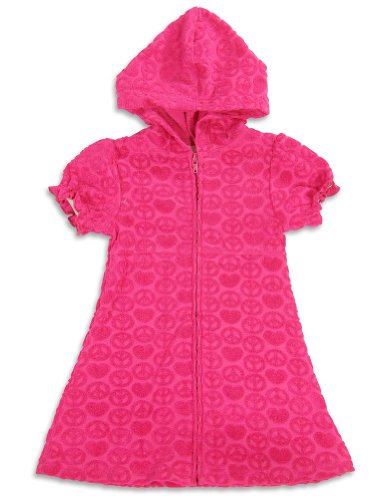 Pink Platinum - Toddler Girls Short Sleeve Peace Coverup, Fucshia, Hood, Zipper Front, Terry Cloth Peace And Heart Embossed, Elastic Sleevebands, 75% Cotton 25%Polyester, #24037You will not be disappointed with