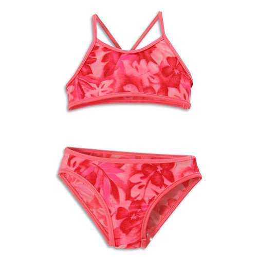 Tidepools Swimwear - Girls Two Piece Swimsuit, Red, Salmon, Spaghetti Strap Racerback Top, Bikini Bottom, Solid Trim Piping, Flower Print, Crotch Lining, 85% Nylon 15% Lycra, Made In USA, #22006You will not be disappointed with